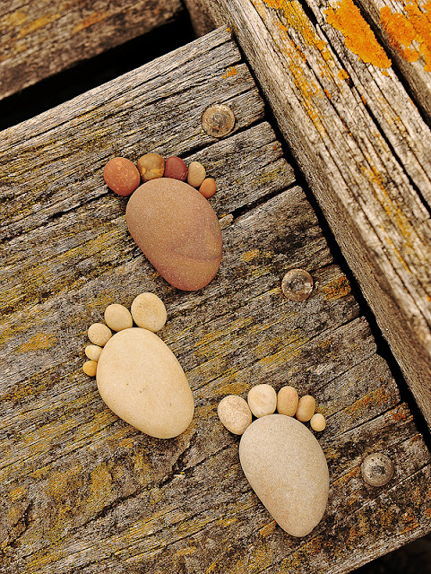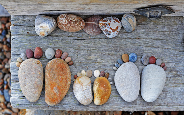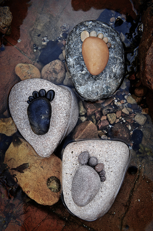 Шкотланѓанецот Ијан Блејк кој сега живее во јужноисточна Англија и  кој аматерски се занимава со фотографирање, ги собрал овие камчиња и од нив направил отисоци од стапки. Не само што камчињата се необични сами по себе (и убаво аранжирани),  туку и се одлично сликани и целата композиција е едноставно прекрасна.