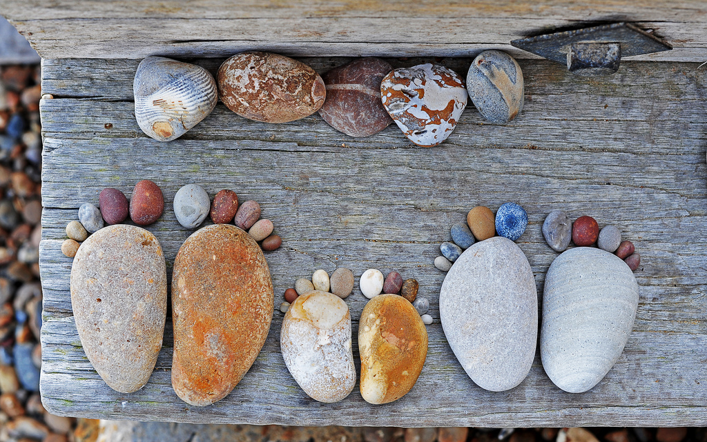 Шкотланѓанецот Ијан Блејк кој сега живее во јужноисточна Англија и  кој аматерски се занимава со фотографирање, ги собрал овие камчиња и од нив направил отисоци од стапки. Не само што камчињата се необични сами по себе (и убаво аранжирани),  туку и се одлично сликани и целата композиција е едноставно прекрасна.