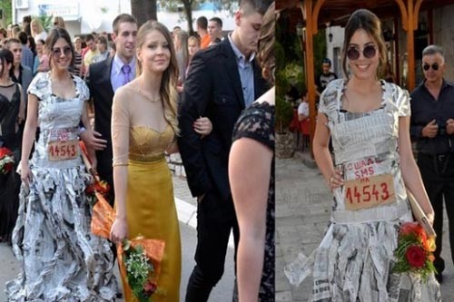Таа ги вчудоневидела присутните, кога на матурската вечер се појавила во фустан изработен од весници, а на себе како накит носела порака со бројот 14543, за помош на жртвите од поплавите. Бидејќи не може да помине незабележана, а пораката е многу гласна, не постои човек кој не би пратил СМС на бројот.