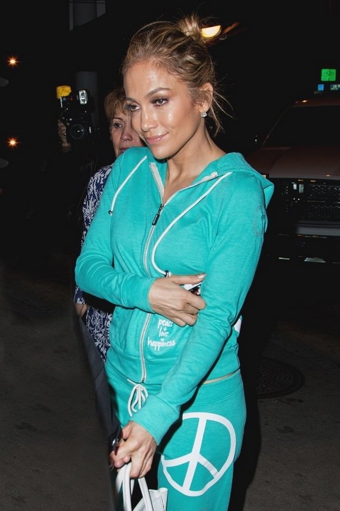 Џенифер Лопез минатата вечер ја поминала во друштво на своето момче Каспер Смарт, а за прошетка низ градот одлучила да ги замени раскошните фустани со удобна тренерка во тиркизна боја. Убавата пејачка во секоја комбинација изгледа беспрекорно со што дополнително придонесува за вештото позирање пред камерите.