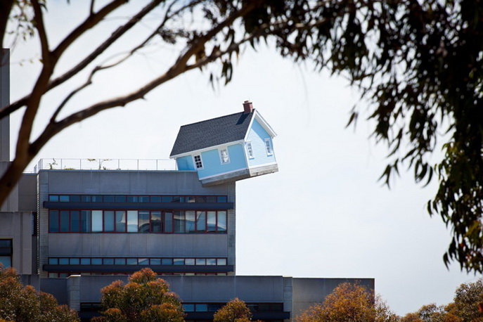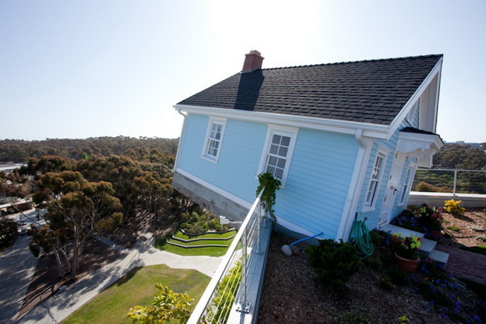 Додека се движите низ оваа накосо поставена куќичка,