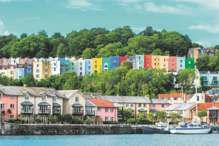 Бристол никого не остава рамнодушен со своите шарени куќи. Фасадите на зградите по должината на рабовите на карпите се обоени во светли бои, како шарена ограда. Додадете ги на тоа поинтензивно обоените влезни врати на куќите и ќе најдете боја на секој чекор во Бристол.