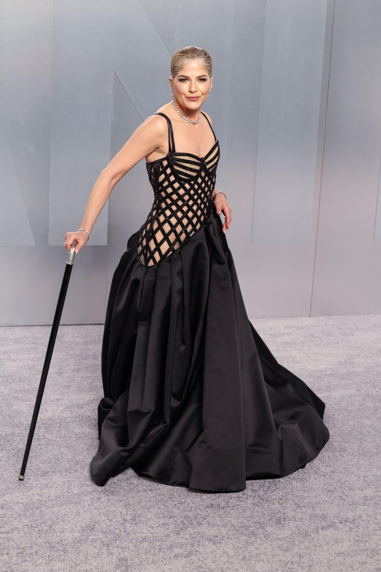 Селма Блер, 53, изгледаше многу елегантно на забавата за доделување на Оскарите на „Венити фер“, одејќи по црвениот тепих со бастун во рака, пишува „Џио њуз“.