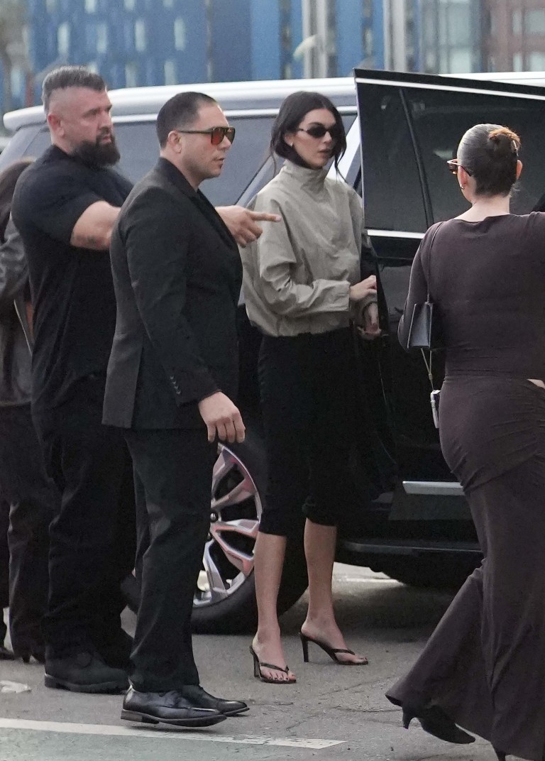 Наместо лежерна верзија со маица и патики, Кендал се одлучи за апостолки со висока потпетица и носеше еден од најголемите трендови на годината досега: спортска јакна со подигната јака.